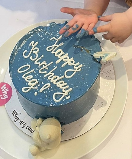 На снимках видно, что молодые родители отпраздновали первую дату своего малыша в узком семейном кругу. Счастливый отец одной рукой придерживает детский велосипед, а другой обнимает свою хрупкую жену. На другом же снимке запечатлен ярко-синий именинный торт, к которому тянутся ручки Олега Ивановича. «1 год! Любим бесконечно!» — подписала пост Диана.