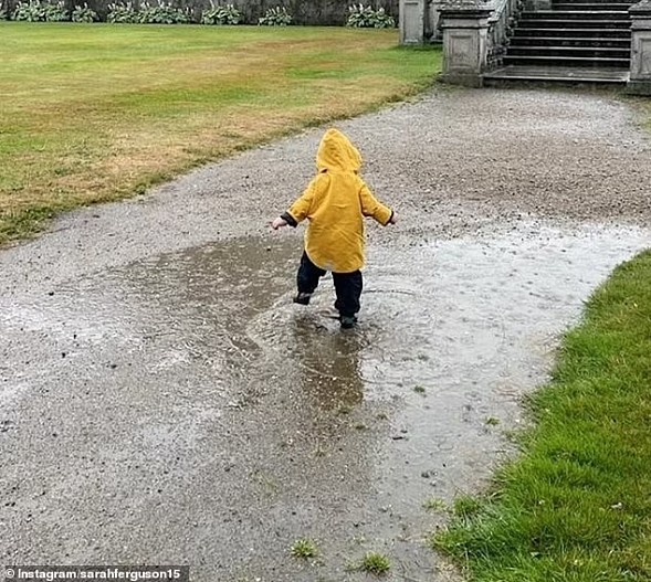 Вскоре после этого Ферги, мать принцессы Евгении, поделилась фотографией своего внука, играющего в лужах. «Я в бабушкином раю», — многозначительно прокомментировала она снимок.