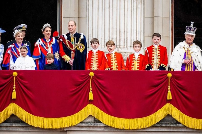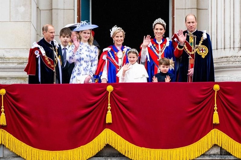 6 мая Карл III и королева Камилла были коронованы на исторической церемонии в Вестминстерском аббатстве. После торжества новые король и королева Великобритании вышли на балкон Букингемского дворца, чтобы поприветствовать подданных. К ним присоединилась главные члены семьи Виндзор, включая Уэльских — принца Уильяма, принцессу Кейт и их троих детей — принца Джорджа, принцессу Шарлотту и принца Луи — а также других почетных особ и сестру Камиллы, Аннабель Эллиот.