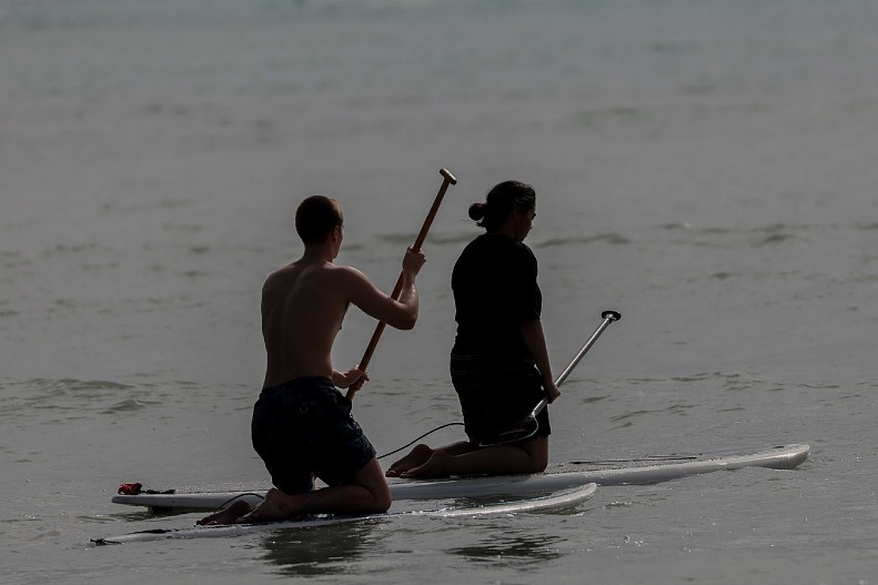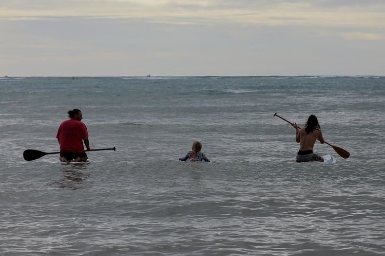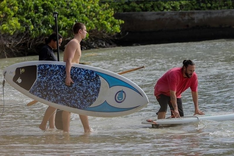 На кадрах видно, как Шон стоит на коленях на доске для серфинга, в то время как Кевин держит свою доску и обсуждает что-то с Кори. Это первый раз, когда семью видели вместе с момента переезда в солнечный штат.