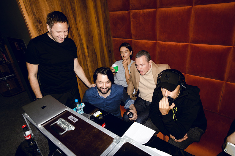 Константин Богомолов, Елена Лядова, Аня Чиповская и другие актеры на площадке.