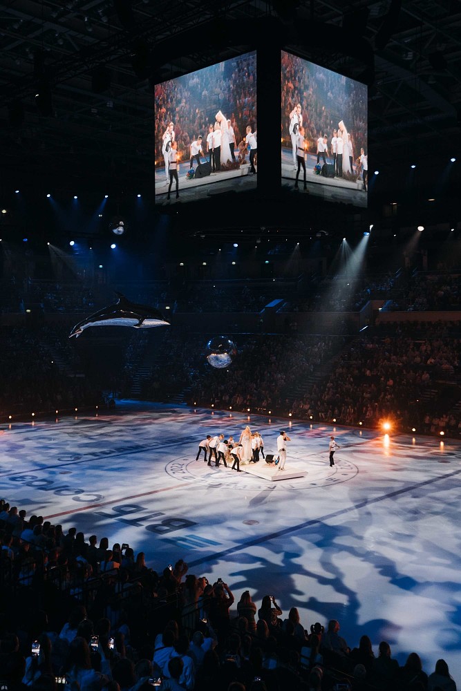 Двукратный олимпийский чемпион Евгений Плющенко собрал в своем шоу именитых спортсменов, артистов и юных фигуристов. Украсили представление ведущие вечера: продюсер Яна Рудковская и российская фигуристка Елена Радионова.