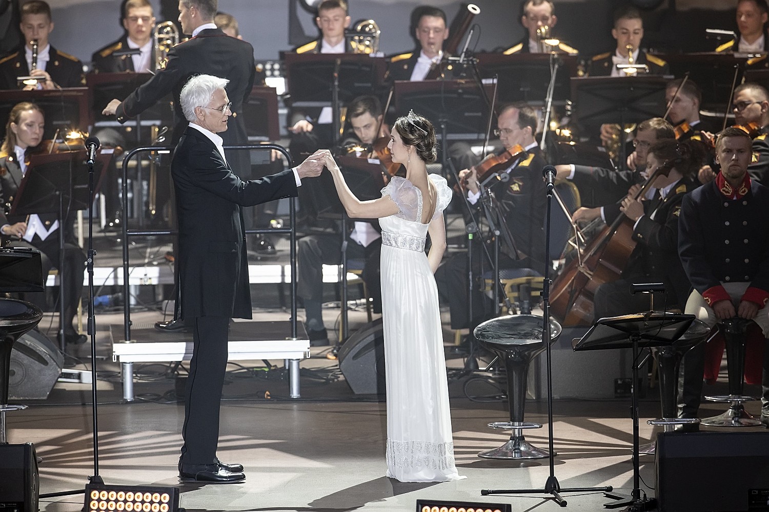 На Дворцовой площади выступили и прославленные творческие коллективы: Дважды Краснознаменный Академический ансамбль песни и пляски Российской Армии им. А.В. Александрова, Центральный военный оркестр Министерства обороны Российской Федерации, Ансамбль песни и пляски Западного военного округа, а также Театр Алексея Рыбникова.