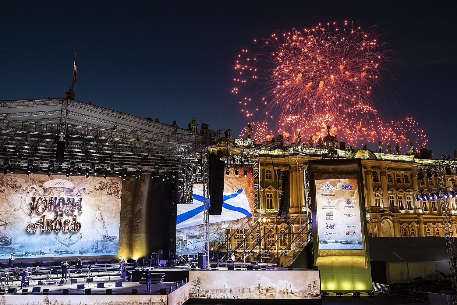 Для Санкт-Петербурга День Военно-Морского Флота России – особенный праздник, ведь вся история российского флота начиналась именно здесь. В честь этой даты один из крупнейших российских медиахолдингов «Русская Медиагруппа» при поддержке Министерства обороны Российской Федерации подарил десяткам тысяч зрителей известную театральную постановку. Вход на Дворцовую площадь был бесплатный.