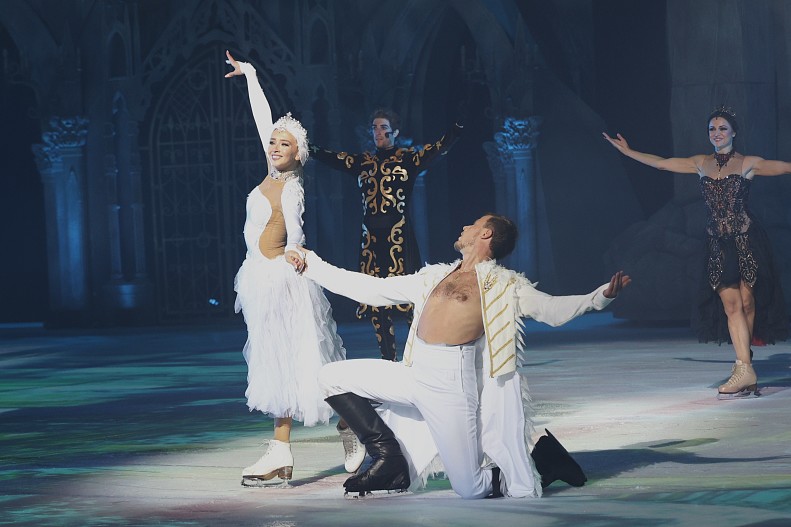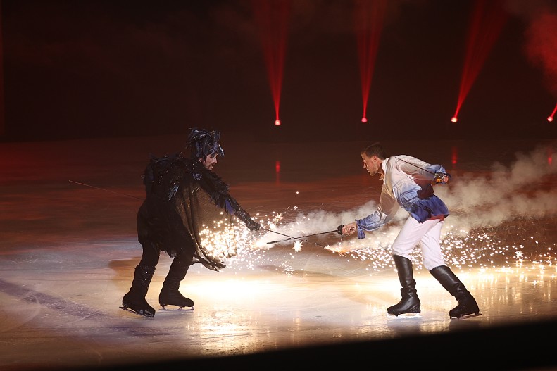Действие шоу разворачивается не только на льду, но и над ним, включая полёты артистов под куполом арены, невероятные трюки с участием акробатов и, конечно же, сказочные превращения.