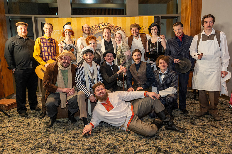 Вечер открыла иммерсивная театрализованная программа по мотивам произведения Ильфа и Петрова, которую представили режиссер Илья Мусатов, сценарист Сергей Кемпо и артисты Театра Наций. Декорации, провокационные плакаты времен НЭПа, аксессуары в дресс-баре погрузили гостей в удивительную атмосферу Старгорода и героев из романа «12 стульев».