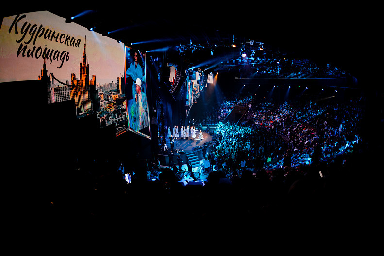 Участники балета TODES облачились в деловые офисные костюмы, чтобы разыграть мизансцены во время песни «Танцы на работе». Но за Митей Фоминым им было не угнаться, и к следующему номеру «Перезимуем» он уже переоделся в элегантное белое пальто, пошутив, что он теперь Иван-царевич, который «меняет всё». Песня «Две земли», с которой Митя Фомин начинал свою сольную карьеру, сопровождалась динамичным лазерным шоу. После этой композиции певец объявил, что теперь в его жизни настала новая эра, которая позволит ему в перспективе собрать и соседний Crocus City Hall.