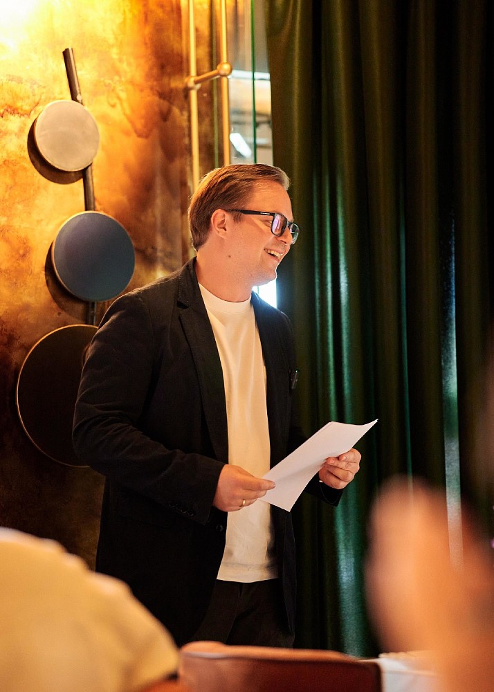 В гостиной «Зойка» на Патриарших прудах в Москве запустили меню поздних завтраков по выходным, и в связи с этим там в формате бранча прошла очередная серия литературного стендапа Алексея Зимина «Любовь по бартеру и без». Автор посвятил новую программу бытовым вопросам, через которые проявляется человеческая сущность — от аренды квартиры и медицинского чекапа до подбора психолога и встречи с мошенниками.