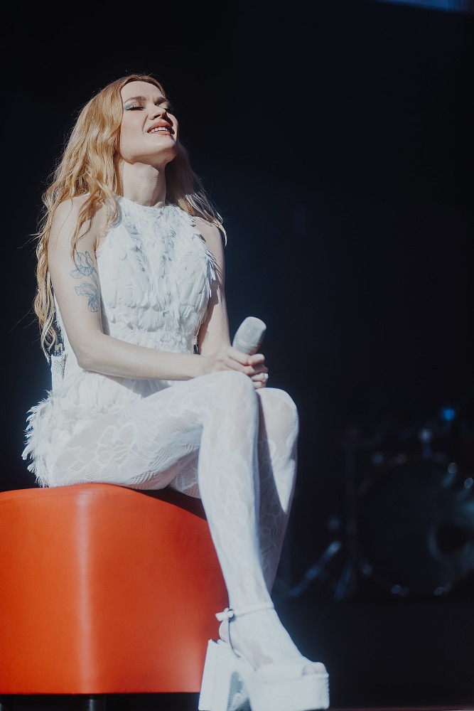 Солистка группы предстала перед зрителями в ослепительно белом платье из перьев, как настоящая Царевна Лебедь, а летающая тарелка над сценой, которая оказалась световым экраном, изящно и необычно подчеркивала настроение всего концерта и концепции «Моя Мишель»: от капель дождя на асфальте к треку «Ты из другого города» до ярко-алых лучей к синглу «Медведь».