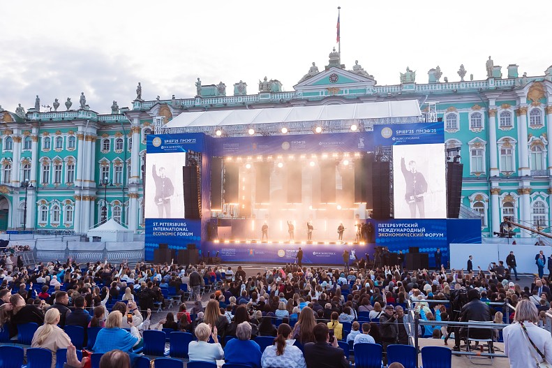 Уже не в первый раз «Русская Медиагруппа» (в этом году холдинг выступил генеральным музыкальным партнером ПМЭФ’25) устраивает подобные шоу для гостей форума. И в этом году концерт стал яркой страницей в культурной жизни летнего Санкт-Петербурга. РМГ вместе с фондом Росконгресс провели на ПМЭФ закрытую вечеринку Арт-коктейль «Вечерний ВиноГрад» в Елагином дворце, где соединились атмосферная музыкальная программа и первые бизнес-обсуждения. А в финале форума холдинг выступил соорганизатором масштабного события, в котором мог участвовать каждый житель Северной столицы.