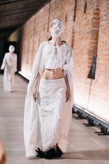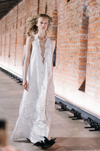 •    Царевны. Архитектурные силуэты и крупные жемчужные вышивки, которые не украшают поверх, а держат форму и создают «ландшафт» на платьях.