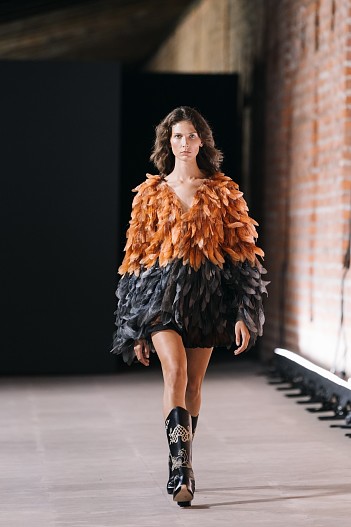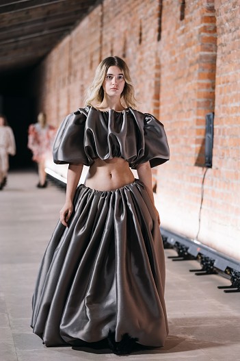 В «Мета‑сказке» Алёна Ахмадуллина перечитывает привычные сюжеты на языке сегодняшней моды. Это вселенная, где фольклор и искусство встречаются с авангардом и технологическими приемами, а вещи становятся визуальными метафорами. Впервые коллекция намеренно разложена на блоки — отдельные сцены с культовыми образами Дома.