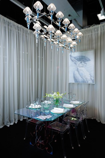 Особое внимание посетителей привлекла премиальная экспозиция, куратором которой в этом году выступила Яна Рудковская. Впервые на Московской неделе интерьера и дизайна она представила совместную коллекцию мебели из стекла, созданную вместе с брендом Burg&Glass. Специально для события мануфактура подготовила лимитированную коллекцию из 12 стеклянных ларцов, посвященных месяцам года. Три предмета были представлены на экспозиции, вызвав большой интерес у гостей.