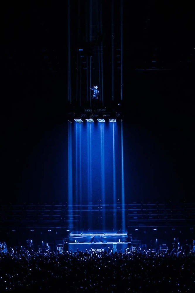 Один из самых сильных моментов — появление Элджея над ареной. Артист совершил экстремальный спуск с высоты более 35 метров (уровень девятиэтажного дома) на светящейся платформе.