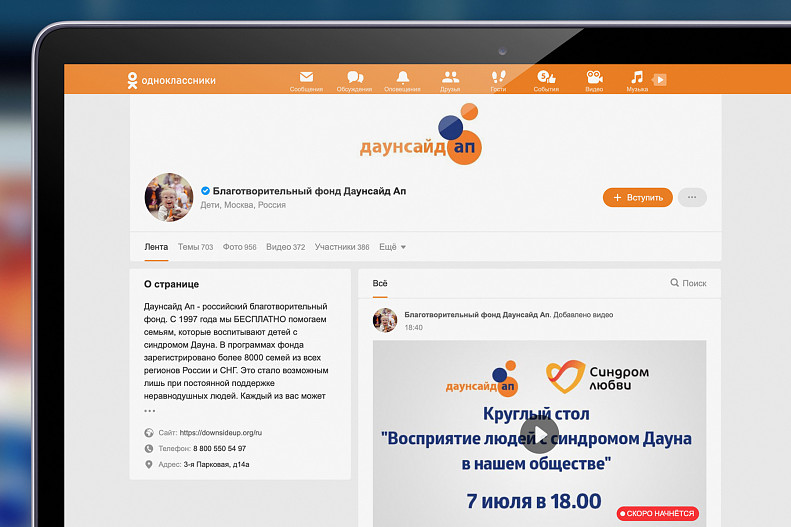 Круглый стол состоится 7 июля в 18:00 в формате видеозвонка ОК в группе благотворительного фонда Даунсайд Ап — надежного партнера сервиса Добро Mail.ru. Гости мероприятия в прямом эфире обсудят изменение отношения общества к людям с синдромом Дауна и анонсируют старт акции «Книжки вверх ногами» в июле этого года. Встреча-звонок будет транслироваться в прямом эфире Одноклассников, поэтому зрители в чате смогут задавать вопросы гостям передачи и семьям с «солнечными детьми».