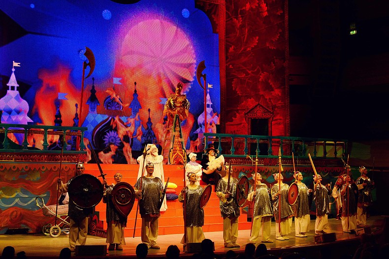 «Сказки Пушкина» — яркий современный музыкальный спектакль с песнями, танцами, волшебством на сцене и чудесами на экране.