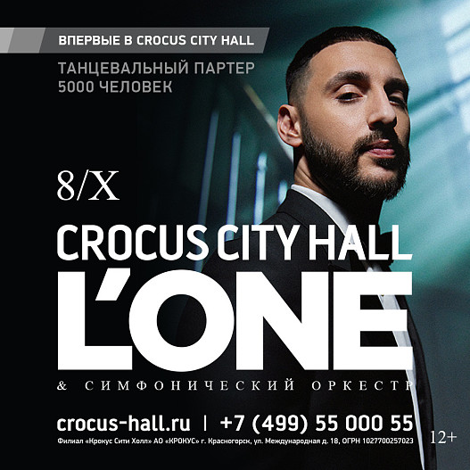 8 октября L’ONE вновь соединит хип-хоп и классическую музыку на одной сцене. Любимые зрителями песни – «Самая простая песня», «Вместе», «Океан», «Все или ничего», «Все танцуют локтями», «Тигр», и все самые громкие хиты, написанные за последние 5 лет, получат вторую жизнь в новой симфонической аранжировке. Популярные песни артиста зазвучат по-новому, а обновление многофункционального концертного зала Крокус Сити Холла с увеличенным танцевальным партером позволит запомнить это событие на всю жизнь!