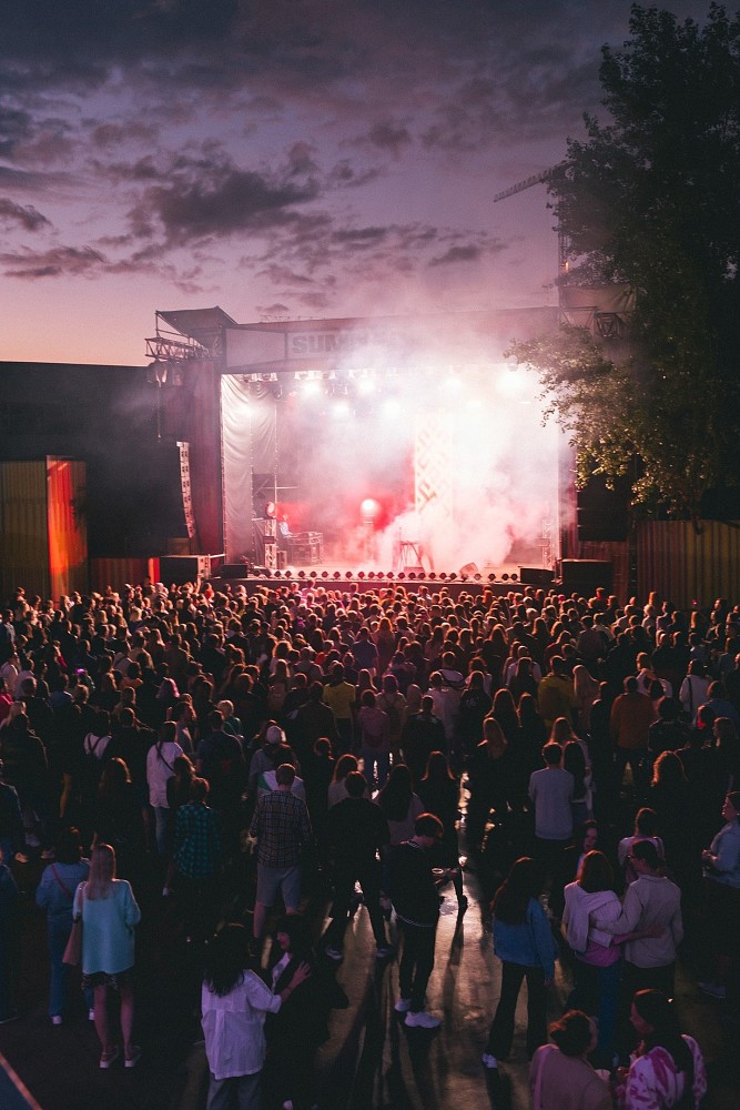 Summer Stage начала работу в 2022-м, в прошлом сезоне площадке удалось продать более 30 000 билетов, а также зарекомендовать себя как пространство для многотысячных летних событий. Несмотря на индустриальные окрестности, фестивалю удается создать атмосферу уютного двора, где можно встретить близких и спланировать дальнейшие планы выходного летнего дня. У площадки удачная эргономика, до нее удобно добираться пешком от нескольких станций метро и комфортно слушать концерты. Места хватит и тем, кто любит танцевать в первых рядах, и гостям, предпочитающим уединиться — например, в VIP-зоне над танцполом.