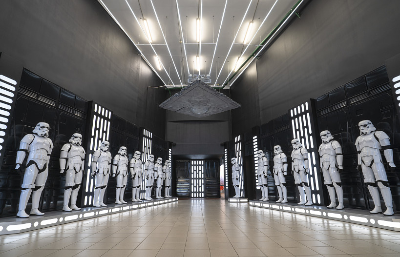 Здесь разместилось больше двухсот экспонатов, среди которых аниматронные представители инопланетных рас, космическая техника, полномасштабные инсталляции–реконструкции миров, а также галерея костюмов культовой киносаги.