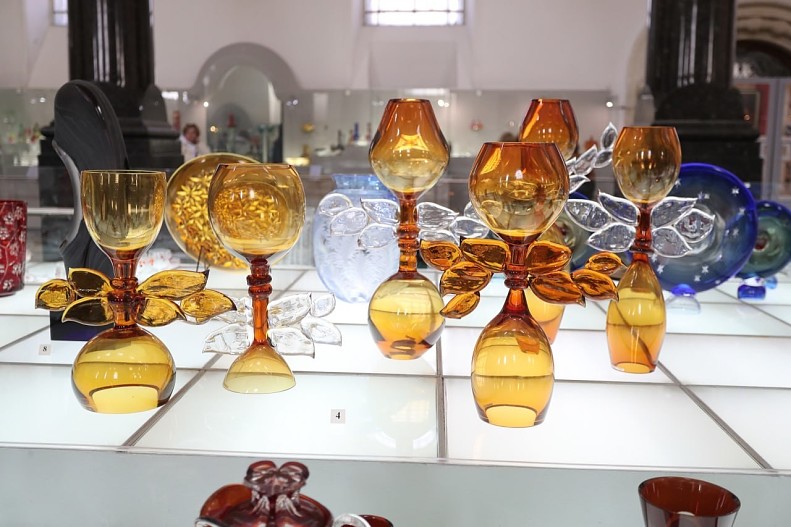В Гусь-Хрустальном стекольное производство существует с XVII века. В XIX веке владелец фабрики Иван Мальцов создал комнату образцов, где хранились самые интересные и необычные работы. Хрусталь с гравировкой и алмазной гранью, цветной и прозрачный — изделия из небольшого городка были известны не только в России, но и в Европе. С 1983 года в Гусь-Хрустальном работает Музей хрусталя. К его сорокалетию в филиале Владимиро-Суздальского музея-заповедника создали большую выставку. «Гимн стеклу» — это история промысла в тончайших изделиях, сверкающих гранях и экспериментальных формах. Всего здесь показывают больше двухсот образцов Гусевского завода.
