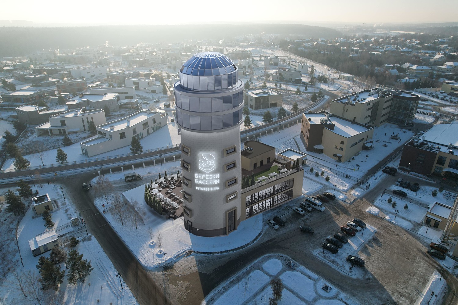 Здание клуба стилизовано под маяк – это яркое архитектурное решение становится визитной карточкой пространства, подчеркивая его стиль и уникальность. Территория объединяет 10 этажей, где на площади 5 000 кв. м представлены все возможности для индивидуальных и групповых тренировок, а после – расслабленного отдыха. Одно из главных преимуществ «Березки Бассейн by Crocus Fitness» – открытый подогреваемый бассейн, где можно заниматься плаванием в любое время года, наслаждаясь живописным ландшафтом.
