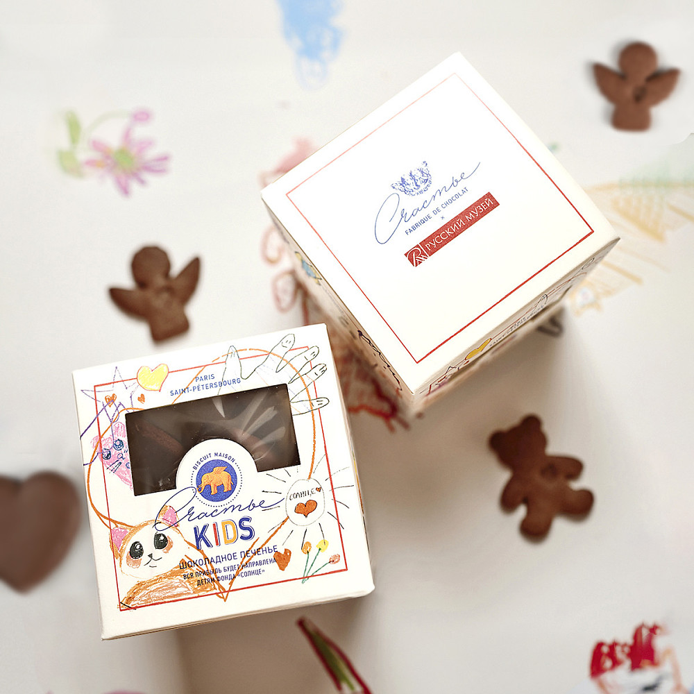 Ко Дню защиты детей Шоколадная Фабрика СЧАСТЬЕ выпустила лимитированную коробочку печенья с детскими рисунками. Набор можно найти во всех Лавках Счастья Москвы и Санкт-Петербурга с 1 июня по 31 августа, а вся прибыль от его продажи будет направлена в детские благотворительные фонды.