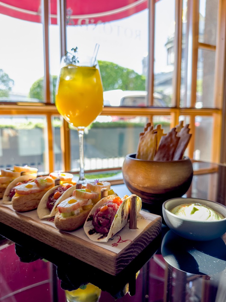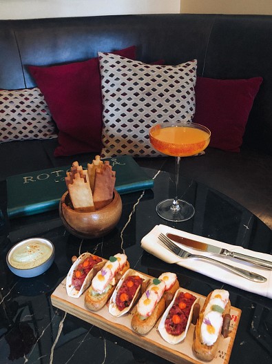 Вдохновившись экспозицией, шеф-повар Франсуа Кантен презентовал сет закусок для двоих For the Love of Art с оригинальными вкусовыми сочетаниями: эклеры с манго, огурцом и крабом, тако с тартаром из говядины с табаско и ворчестерским соусом, розмариновые чипсы с муссом и авокадо.
