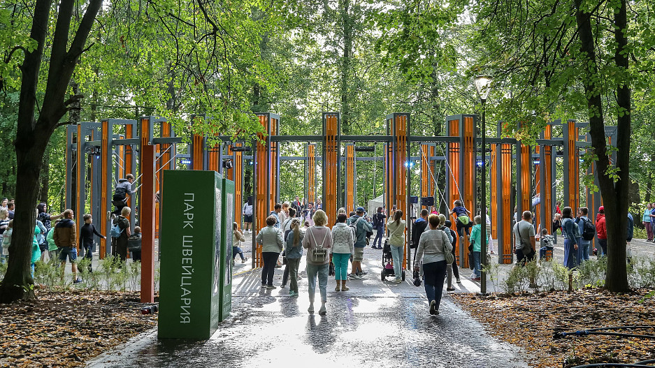 На правом берегу Оки находится парк «Швейцария», получивший такое название ещё в конце XIX века. С высокого берега открываются прекрасные виды, парк является природной зоной, но по-настоящему он знаменит развлекательной инфраструктурой. В парке есть экотропа, верёвочный парк, планетарий, читальня, детский центр с образовательными программами, спортивный кластер, несколько кафе и… 14 детских площадок! Также в парке живут белки, птицы и редкие насекомые, так что даже простая прогулка становится познавательной и увлекательной.