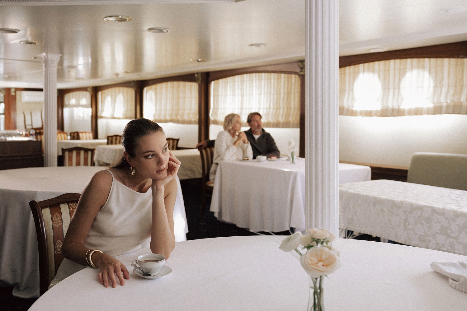 С той же детальностью, с которой компания относится к сервису и комфорту гостей, отражено и в сюжете - почему каждый фрагмент путешествия оставляет яркие впечатления: от момента, когда путешественники видят возвышающийся над речной гладью теплоход и прогулок по залитой солнцем палубе до программы музыкального вечера.