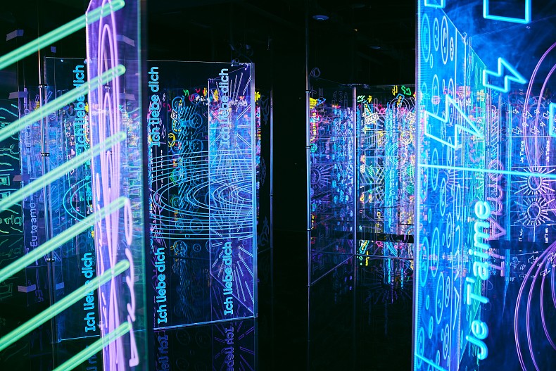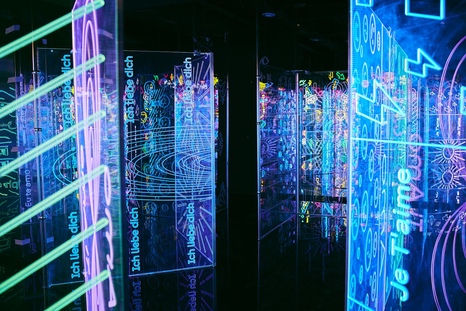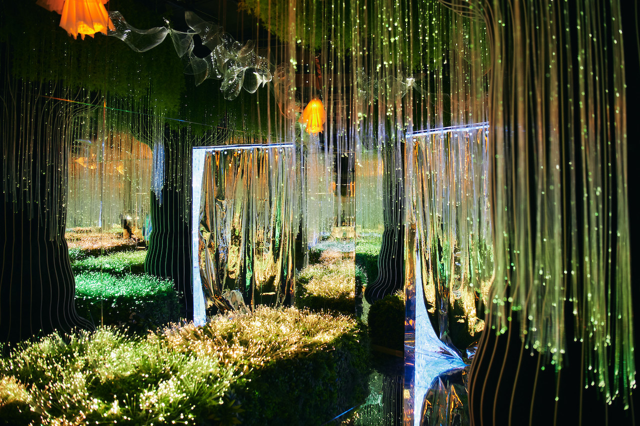 Infinitum — зеркальные поверхности, расположенные стратегически по всей зоне проекта. Они умножают свет и создают эффект бесконечного пространства.