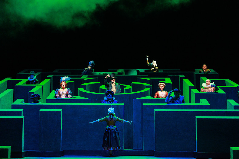 Остроумная комедия Шекспира поставлена ярко и весело, с необычными декорациями-лабиринтами, где неожиданно оказываются герои. Сеть сюжетных линий сплетается из интриг, комических конфликтов и неожиданных поворотов. Лабиринт символизирует перипетии судьбы: но удастся ли героям найти выход из путаного пространства? В главной, озорной, роли сэра Джона Фальстафа — народный артист России Александр Клюквин. Эта жизненная комедия о ветреном поклоннике двух виндзорских кумушек, которые хитро раскрывают коварный замысел сластолюбца, точно поднимет настроение и даст повод задуматься о жизни, которая часто погружает нас в лабиринты удивительных событий.