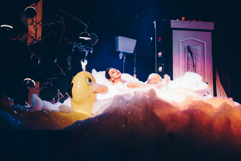 Сюжет строится вокруг девушки, которая застряла в чужой ванной комнате, а каждая попытка выбраться оттуда заканчивается крахом — нарочно не придумаешь! Истерика сменяется принятием и расслаблением, отчаяние — погружением в мир мечтаний и фантазий. Иммерсивности этому спектаклю добавляет непосредственное взаимодействие героини со зрителями. Спойлер: в финале запланирован большой потоп в ванной комнате! А вот случится ли спасение из заточения — узнаем уже в ноябре. В главной роли — Анна Музыченко, она же является и режиссером постановки. Музыкальное сопровождение спектакля — зажигательные треки группы «The Hatters».
