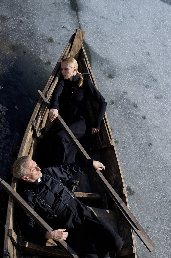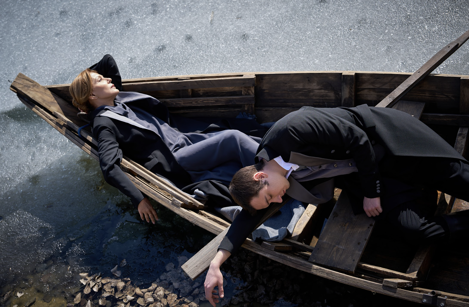 По задумке художника-постановщика Николая Симонова спектакль решён в чёрно-белой гамме, его важные смысловые и атмосферные ключи — тени, вода и лодки. При создании декораций Симонов вдохновлялся работами норвежского художника-фигуративиста Одда Нердрума. Музыкальным оформлением спектакля занимался постоянный соавтор Дениса Азарова композитор Кирилл Таушкин.
