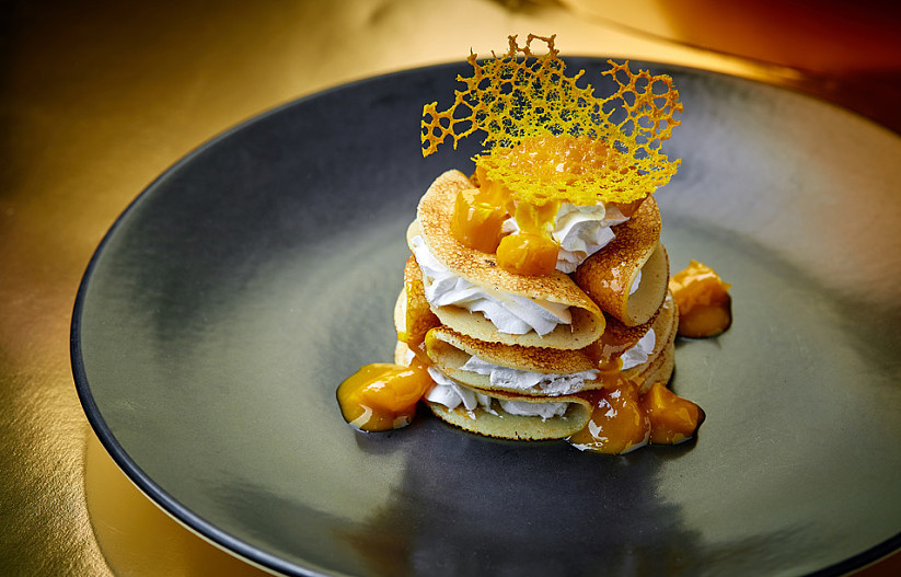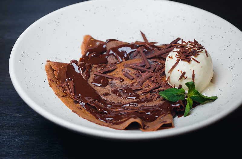 «Венские» блины с карамелизированным яблоком и ванильным мороженым