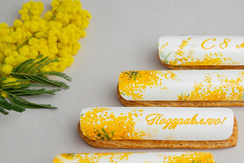 Эклеры «Аромат весны» создадут и вкусовое и визуальное настроение. А торт «8 марта» поражает воображение, густая свежая мимоза в украшении внутри кубического торта открывает двери в весну.