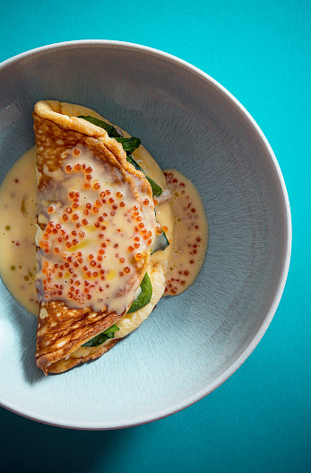 В Wine and Crab в Барвихе серьезно взялись за утреннее меню. Ресторан славится самой крупной коллекцией крабов в мире, так что без океанических товарищей не обошлось. Новый шеф-повар Денис Крупеня готовит с крабом скрамблы, яичницы, омлеты и все яичные производные. Если вы не настроены начинать день с морепродуктов, то вам тоже будет из чего выбрать. Выпечка и хлеб – ручной работы: круассаны классические и с добавками, заварные кольца с рикоттой и сливочным соусом, трубочки. Из модных суперфудных позиций представлены смузи-боулы со смузи от Зеленых до Ягодных. Кроме перечисленного – каши на любой вкус с разным молоком и топингами, виртуозные сочетания из фермерской молочки и сыра (собственного производства), панкейки, блины и вареники.