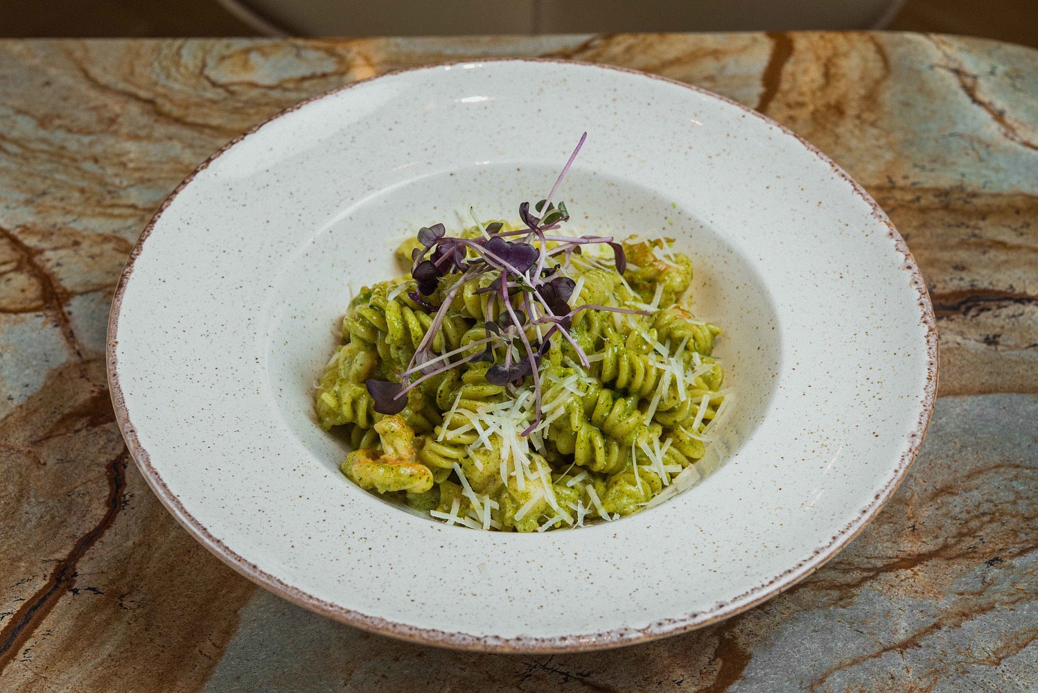 Меню разрабатывал шеф-повар Искандер Джамилов, ориентируясь на последние тренды и гастрономические сочетания: пышный омлет на утро, тартары, несколько видов пасты и ризотто, пицца, а также горячие блюда из рыбы и мяса. Завтраки здесь подают каждый день с 10:00 до 14:00. Утро можно начать, например, с английского завтрака с колбасками, бобами, аджикой, яичницей и беконом или с воздушного омлета со слабосоленым лососем.