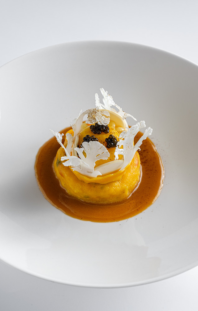 В рамках сета гости также смогут попробовать равиоло с начинкой из дальневосточного краба; перепелку, фаршированную завернутыми в шпинат фуа-гра, светлым изюмом и фисташкой; рулет из седла ягненка с добавлением печеных каштанов и шпината; традиционное японское блюдо натто; узбекские томаты и икра карельской форели; фиолетовый картофель в виде мороженого и крыжовник, который сначала заквашивается в течение пяти дней, потом чернится на протяжение 16 часов, а после маринуется.