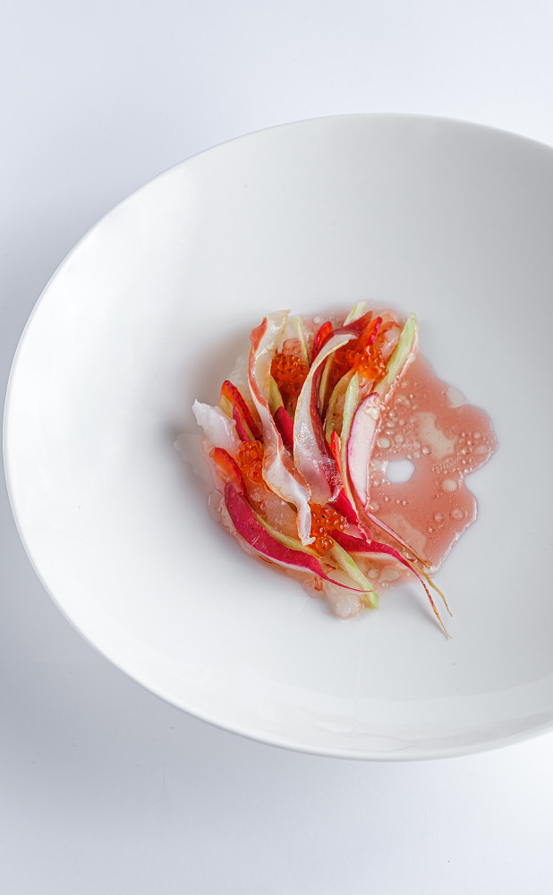 Сет «Время» состоит из 12 подач, а на то, чтобы его попробовать, понадобится не менее двух часов. Поэтому можно смело сказать, что наслаждаться «Временем» нужно без суеты. Заказать сет можно только в основном зале или за chef’s table с 13:00 до 20:00, причем, о своем намерении гостю нужно сообщить минимум за сутки.
