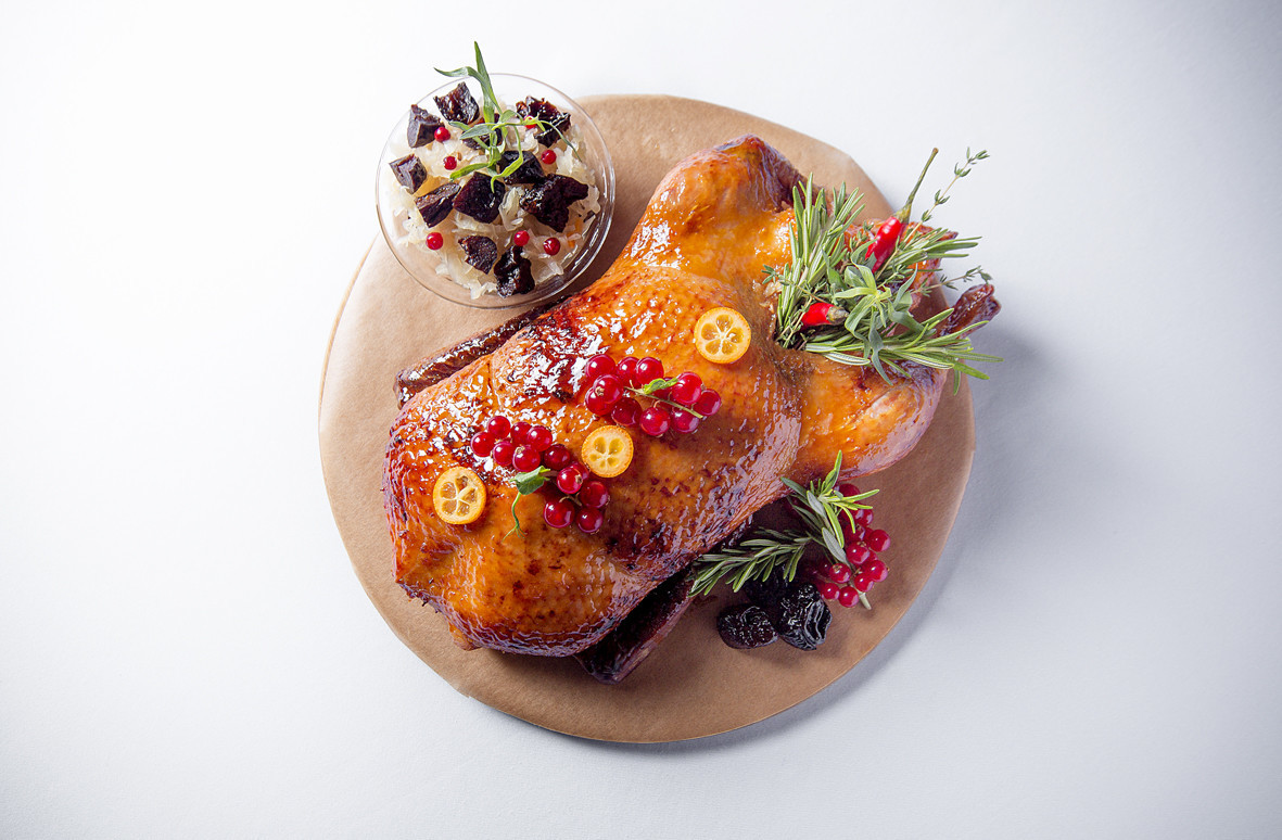 За 48 часов можно заказать заливное из говяжьих хвостов и языка, которое подается со сливочным хреном и корнишонами; ростбиф из говяжьей вырезки зернового откорма, приготовленный в маринаде из тимьяна, чеснока и смеси из перцев, а также запеченную индейку с ароматными специями и медово-апельсиновой глазурью. Длительный предзаказ связан с технологическими сложностями приготовления. Например,