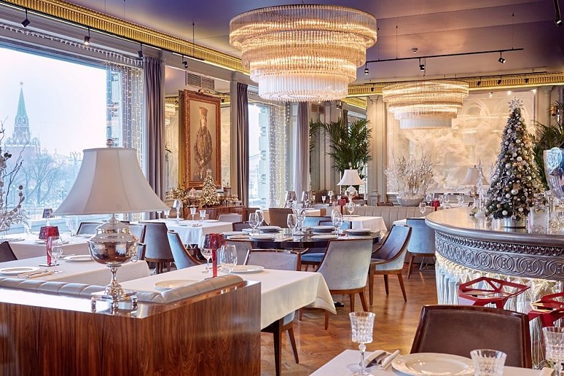 Изысканная классика и солидность — основные принципы ресторана, которым здесь не изменяют и в Новый год. Уникальный вид на Красную площадь, три вида черной икры от «Русского Икорного Дома» — осетр, белуга и калуга; шампанское «R» De Ruinart и водка Beluga Noble – обязательные атрибуты новогодней ночи, которая пройдет под стильные композиции джаза в исполнении Аллы Рид и диджей-сеты.