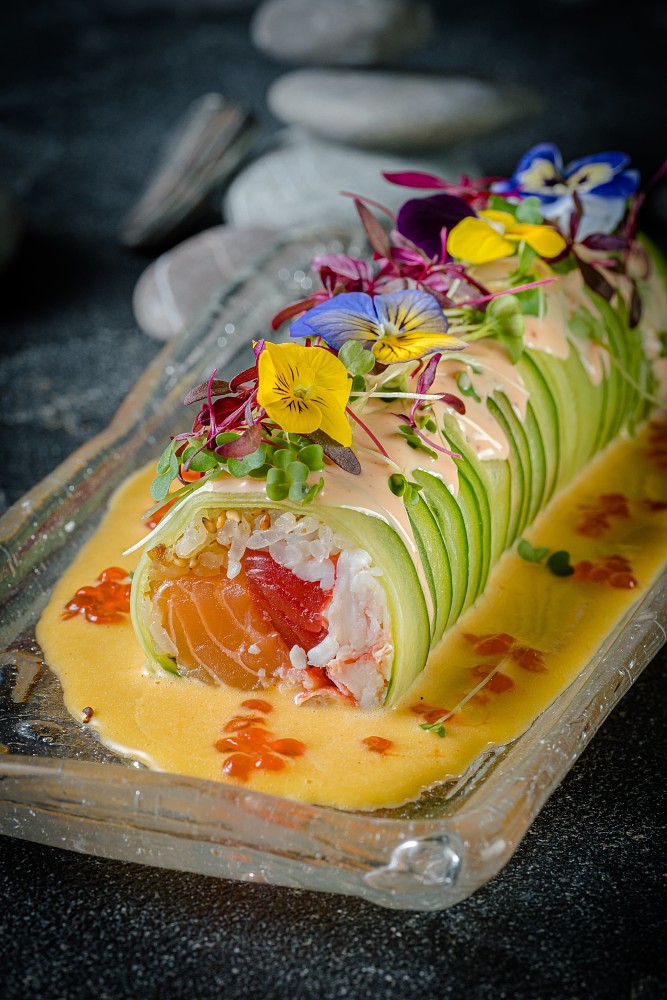 Японское направление здесь по-прежнему курируют бренд-шеф сервиса доставки Bluefin Николай Ким и шеф-повар Вадим Пак. В меню представлен большой выбор фирменных роллов, суши и сашими - около сотни различных вариантов.