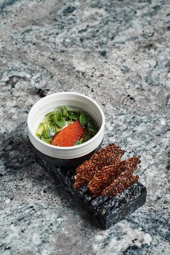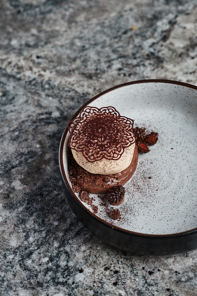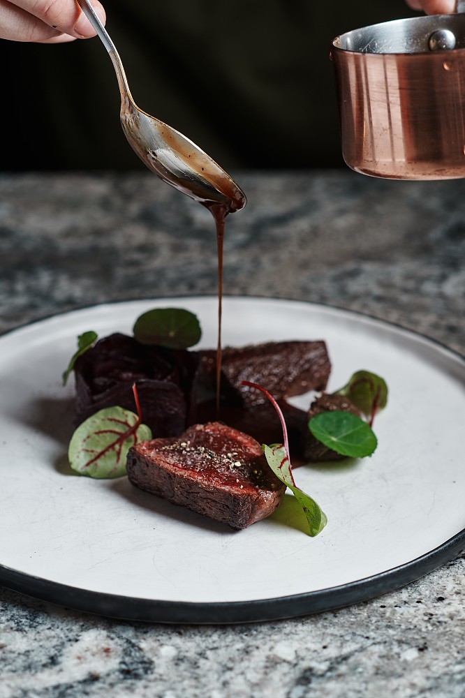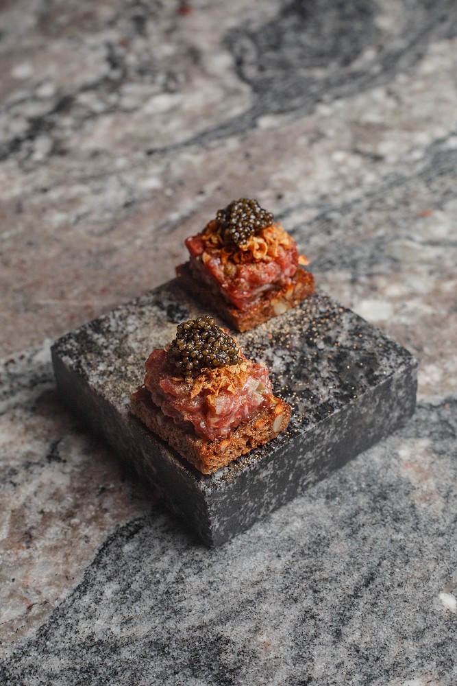 В меню, составленном для бранча бренд-шефом Романом Киселевым и шефом Александром Кучеровым, исключительно визитные карточки региона, которые ложатся в основу новых современных блюд в стиле сибирский нордик. Уникальная икра ангарского хариуса – с кремом из свежей огуречной травы и чипсами из льна, заваренными на бульоне даши. Тартар из северной нельмы – с морошкой в хрупких тарталетках с добавлением водорослей. Злаковый тост с тартаром из говядины «присолен» икрой сибирской стерляди. А сморреброды и вовсе гастрономический топоним – нордик «на два укуса». Но нордик не скандинавский, а наш – с рыжиками, толченым картофелем и икрой чавычи или с вяленым мясом быка. И на горячее, конечно, олень – чистый вкус дикого мяса, подчеркнутый насыщенным перечным демиглассом из дичи, с кедровой кашей.
