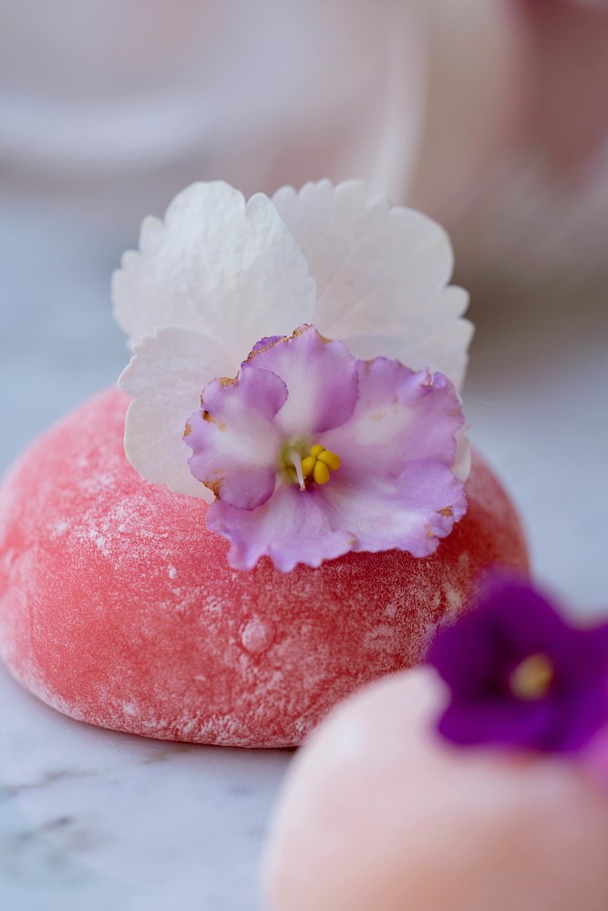 Маленькая Япония J’PAN встречает 8 марта нежностью. В сладком меню – цветочные японские моти с кусочками персика двух видов: веганские с японским персиковым сироаном и классические с заварным кремом. Все моти в бистро украшают весенними съедобными цветами и предлагают поштучно или сетом из 6-ти на выбор. А вот напитки в J’PAN в специальном меню украшают цветами декоративными, однако, от этого нежности и кавайности они не теряют. На кромке бокала моктейля sakura fizz – веточка кремовой гипсофилы, а в его основе – соус из дикой вишни, калпис и содовая.