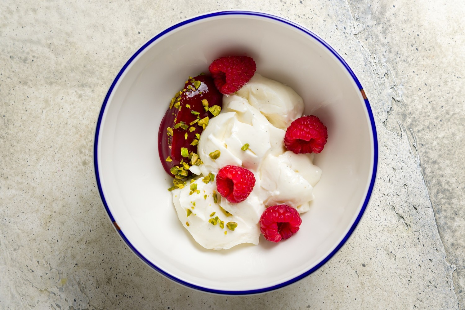 Десерты представлены всего 3 позициями, но все они домашние, подаются на больших подносах и отдаются на развес: чизкейк «SAN Себастьян» с лавандой и смородиной, панна-котта на кефире с малиной и фисташками и профитроли с розмарином.
