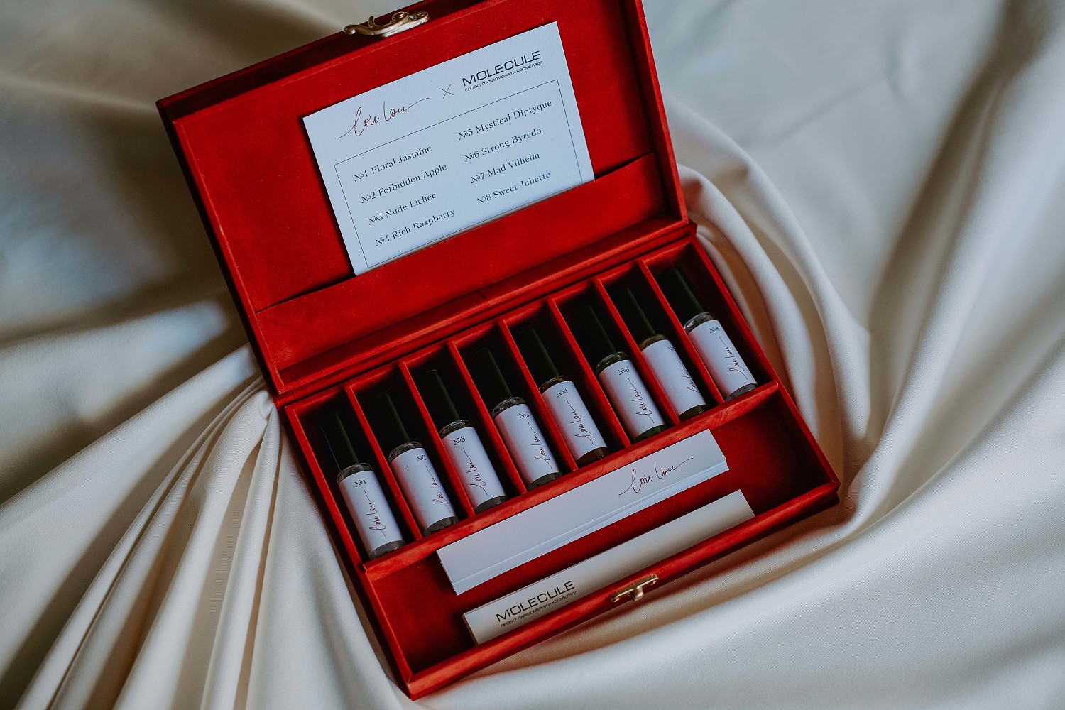 Коктейльную карту, а если быть точнее, парфюмерную линейку Lou Lou & Molecule разработал Артем Талалай, лучший бартендер России 2020-2021 по версии Diageo Reserve World Class. Чтобы выбрать свой напиток, гостям предлагают бархатную коробочку с сэмплами, по аромату которых выбирается будущий коктейль. Каждый аромат – это отсылка к одному из 8 авторских коктейлей. В уникальной парфюмерной линейке 4 коктейля было создано на основе популярных ароматов, которые представлены в проекте парфюмерии и косметики Molecule: насыщенный Sunday Cologne от Byredo, свежий L'Ombre Dans L'eau от Diptyque, страстный The Oud Affair от Vilhelm Parfumerie и чувственный Mmmm... от Juliette Has A Gun.