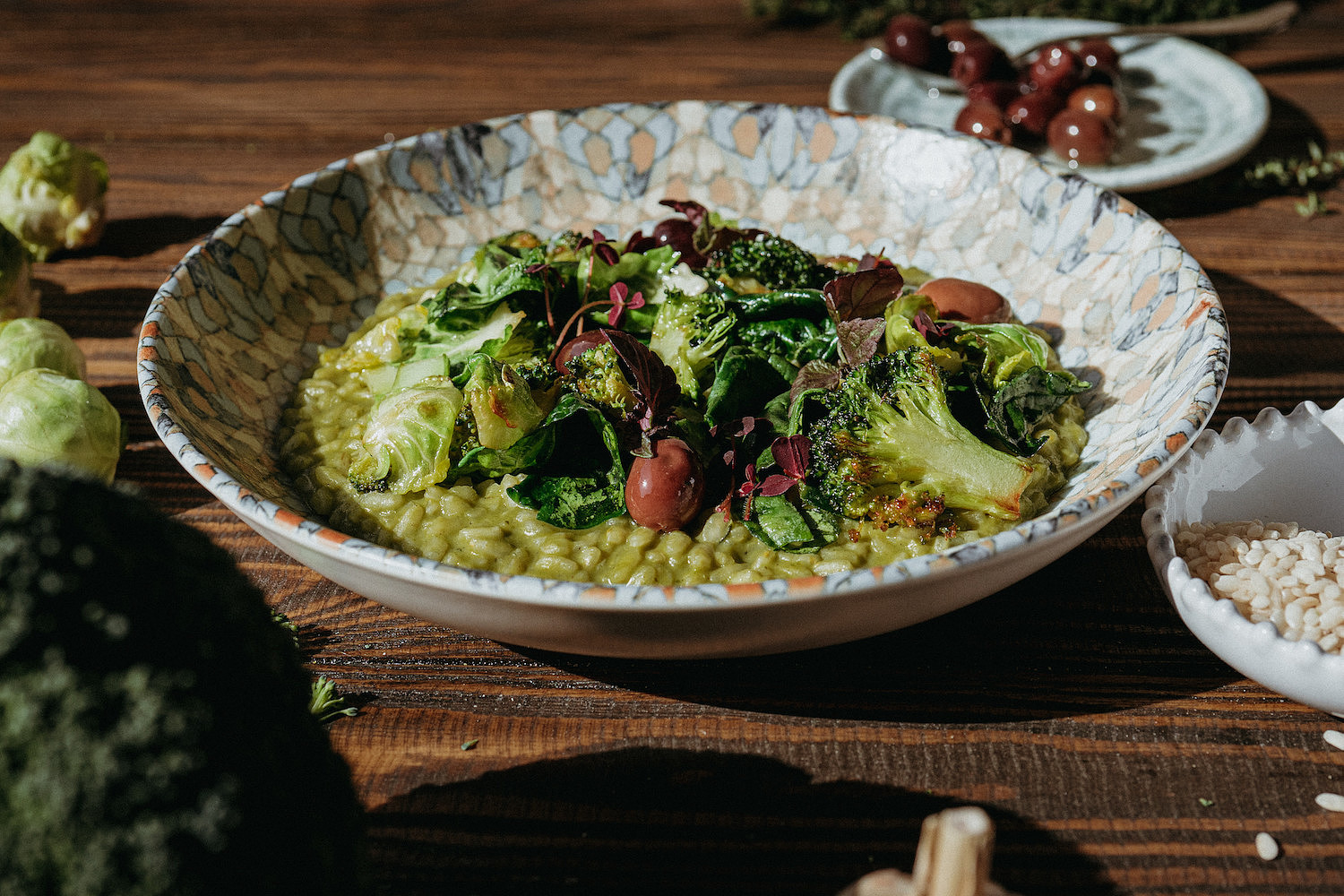 Первое правило Италии — если не знаешь, что говорить, скажи «Паста». Справедливая мысль, особенно если паста постная, например помидорини (650 рублей), алио и олио – с перцем и чесноком (550 рублей), спагетти с кремом и чипсами из цукини (890 рублей). Для предпочитающих пасте рис, шеф придумал ризотто с обжаренными зелеными овощами (890 рублей), это блюдо синоним слова «легкость»: оливковое масло, овощной бульон, крем из брокколи и экстра зеленые составляющие – кенийская фасоль, шпинат, брюссельская капуста.