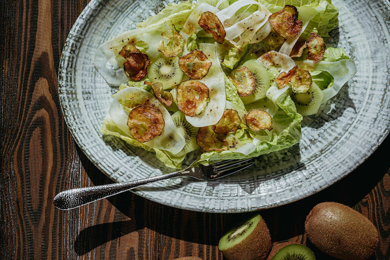 Чтобы сделать баклажановый крем для салата с жареными артишоками и рукколой (1390 рублей) баклажан запекают в печи, а затем заправляют кунжутным дрессингом. Авокадо и цветную капусту обжаривают на гриле и подают с соусами из томатов: авокадо больше подходят конфи и крем из маринованного артишока, а капусту идеально дополняет средиземноморский вкус с добавлением оливок и каперсов.