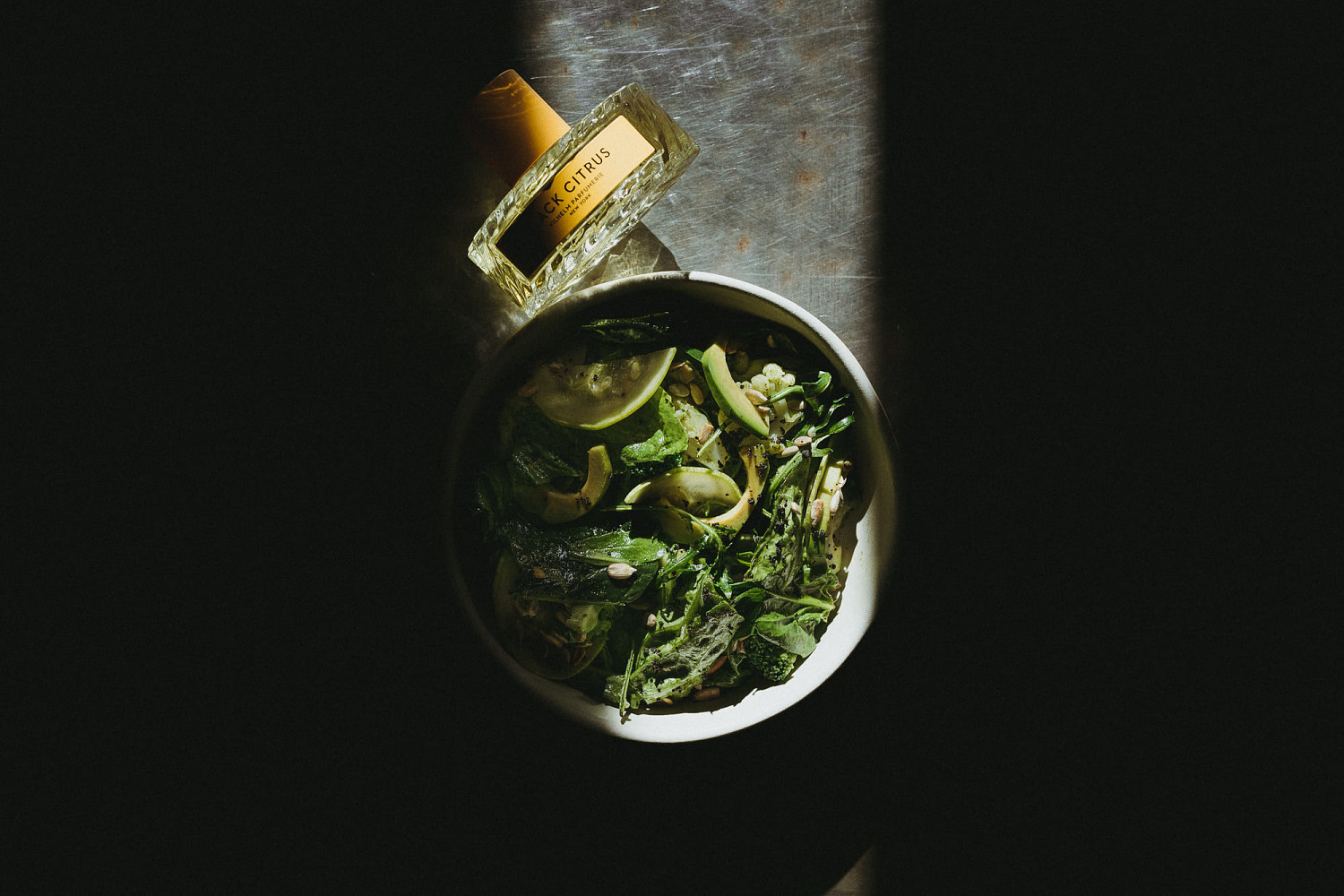 Зеленый салат с брокколи и мятно-цитрусовой заправкой (490 руб.) дополняет композиция Black Citrus с обезоруживающей свежестью бергамота и вуалью туманного пачули по мотивам дождливого Лондона. Индейку су-вид с киноа, папайей и конфитюром из инжира (680 руб.) подают вместе с горько-сладким Purple Fig. Зеленая гречка с гранолой, ягодами и киви (620 руб.) и семпл Morning Chess — идеальная утренняя комбинация.