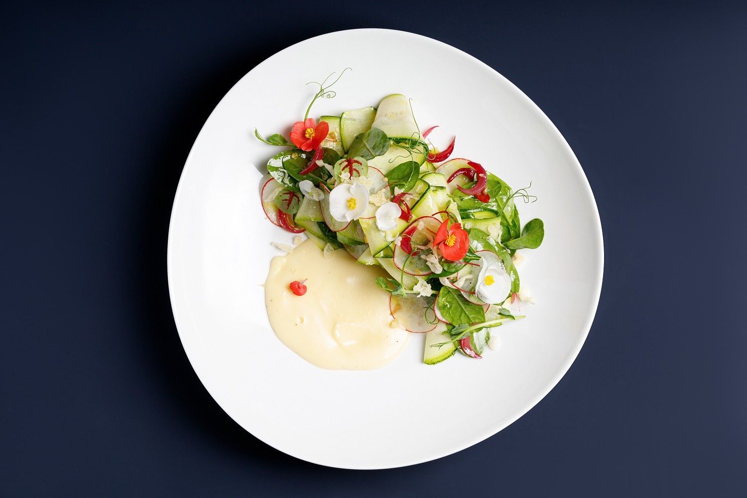 Ценителям гастрономических блюд можно посоветовать карпаччо из цветной капусты с соком юдзу или пикантную брюссельскую капусту с соусом тоннато, яйцом пашот и боттаргой. О приходе весны напомнят молодые цукини с соусом из пармезана и батат с нежным крем-фрешем. Для любителей рыбы и морепродуктов — лосось с хрустями овощами, а также кальмар с солью и перцем.